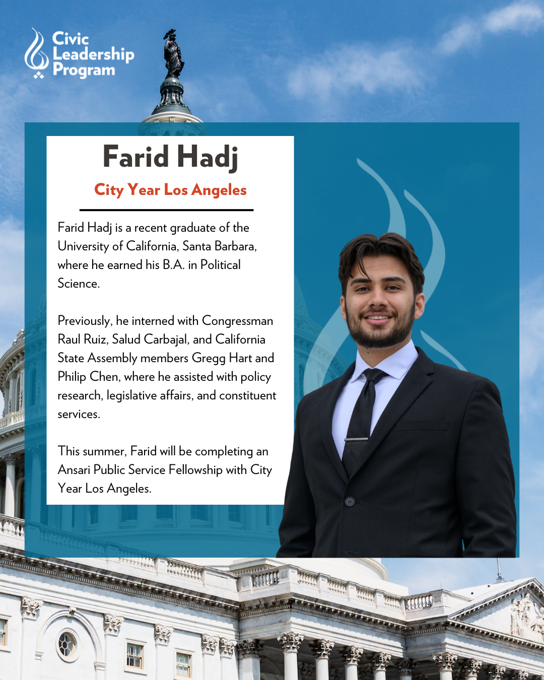 We thank Farid for his dedication and look forward to following his continued growth and future contributions as a valued member of our Civic Leadership Program Alumni.