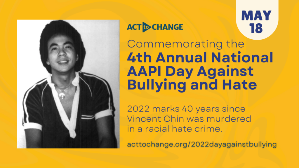 National AAPI Day Against Bullying and Hate is part of Asian Pacific American Heritage Month (APAHM) and marks the birthday of Vincent Chin. In 1982, Chin was falsely blamed for the layoffs in the auto industry and was murdered in a hate crime. This year marks 40 years since this heinous act of hate, and we’re saddened to see history repeat itself in the form of COVID-19 fueled racism and bullying.