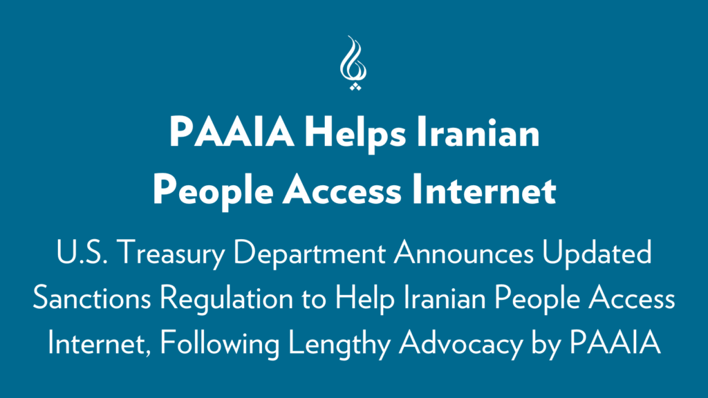 “We welcome with open arms the announcement of General License D-2 by the U.S. Department of Treasury. This new license is an invaluable step in supporting civil society in Iran and ensuring that the Iranian people have access to critical telecommunications tools,” said Leila Austin, Executive Director of PAAIA.
