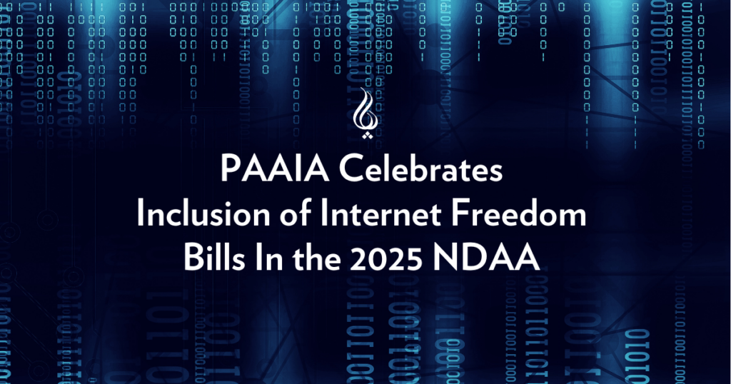 Washington, DC — The Public Affairs Alliance of Iranian Americans (PAAIA) is pleased to announce the inclusion of Section 5124, the Strategy and Grant Program to Promote Internet Freedom in Iran, in the 2025 National Defense Authorization Act (NDAA). This significant measure aligns closely with the language of the Iran Internet Freedom Act (S.5076) introduced by Senators Ben Cardin (D-MD) and James Lankford (R-OK), as well as the Internet Reach and Access Now (IRAN) Act (H.R.9299) introduced by Representatives Eric Swalwell (D-CA/14th) and Claudia Tenney (R-NY/24th).